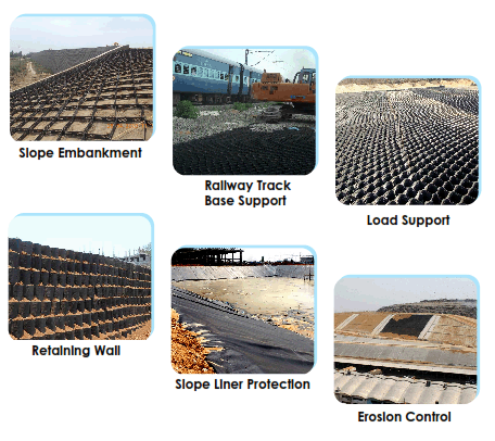 Geoviro Geocell (StrataWeb) is a strong, lightweight, three dimensional honeycomb-like cellular confinement system which offers unique, eco-friendly geotechnical solutions for Civil Engineering challenges. StrataWeb is made of ultrsonocally-welded HDPE strips that are expandable on-site to form a honey-comb-like structure. It acts as a foundation reinforcement for improvement of bearing capacities of weak soils.